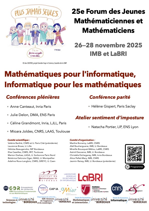 Les exposés se sont tenus à l’Institut de Mathématiques de Bordeaux (IMB) et au Laboratoire Bordelais de Recherche en Informatique (LaBRI).